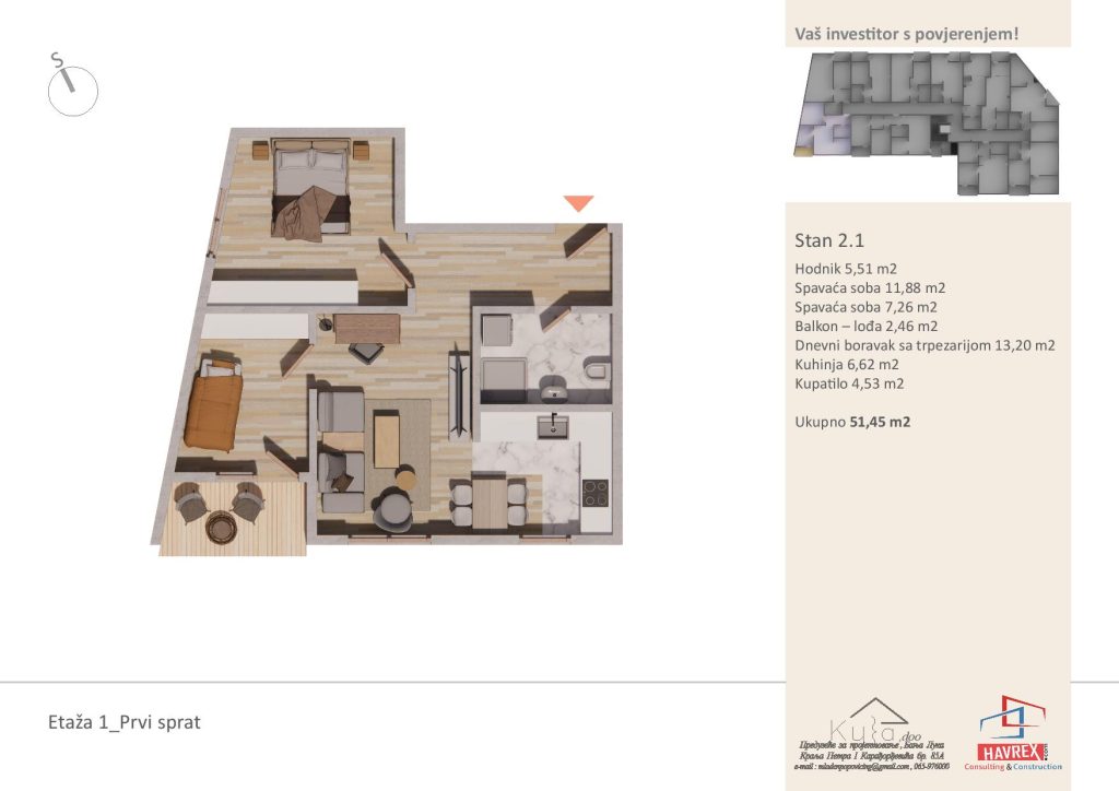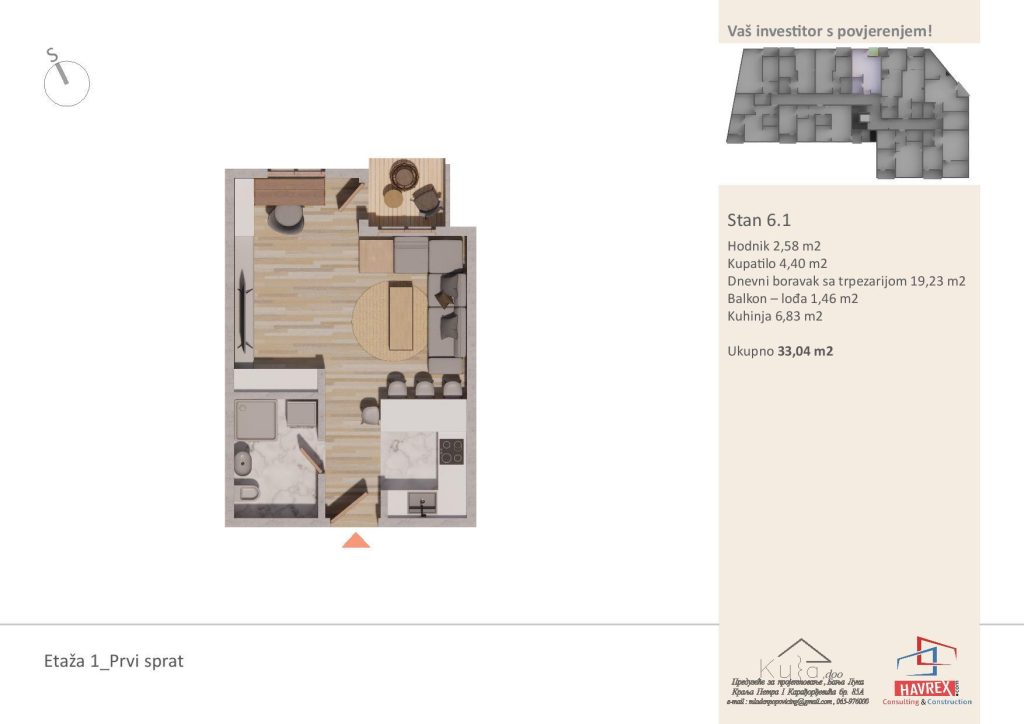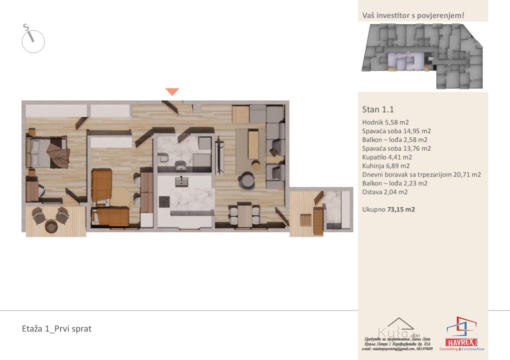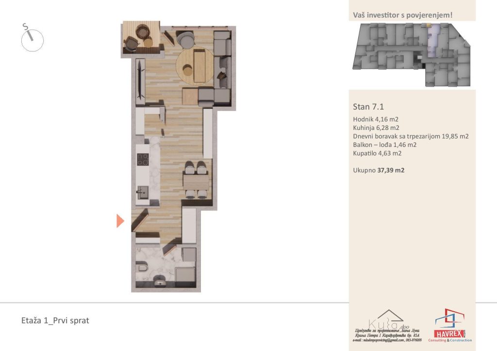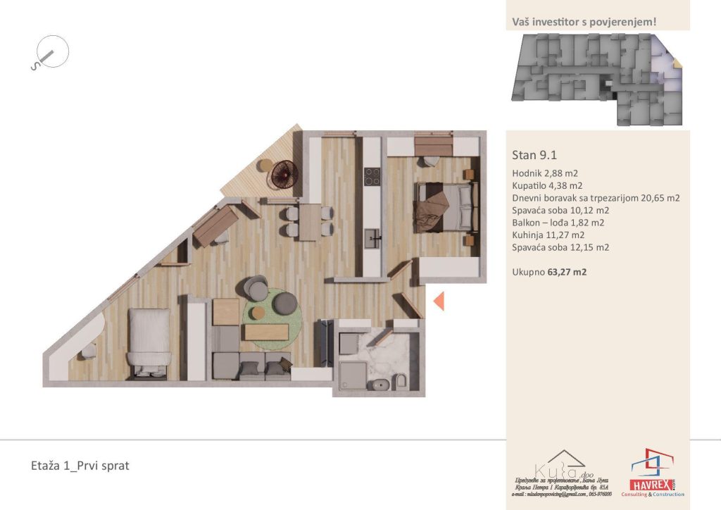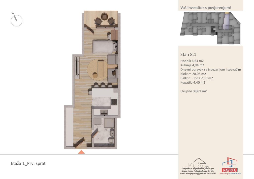 Za cijenu i dodatna pitanja, javite se na: Viber: +387 65 347 000 Email: havrex.nekretnine@gmail.com Etaža 0 - Visoko Prizemlje Etaže 1-4 Render stambenog objekta Vila Ksenija